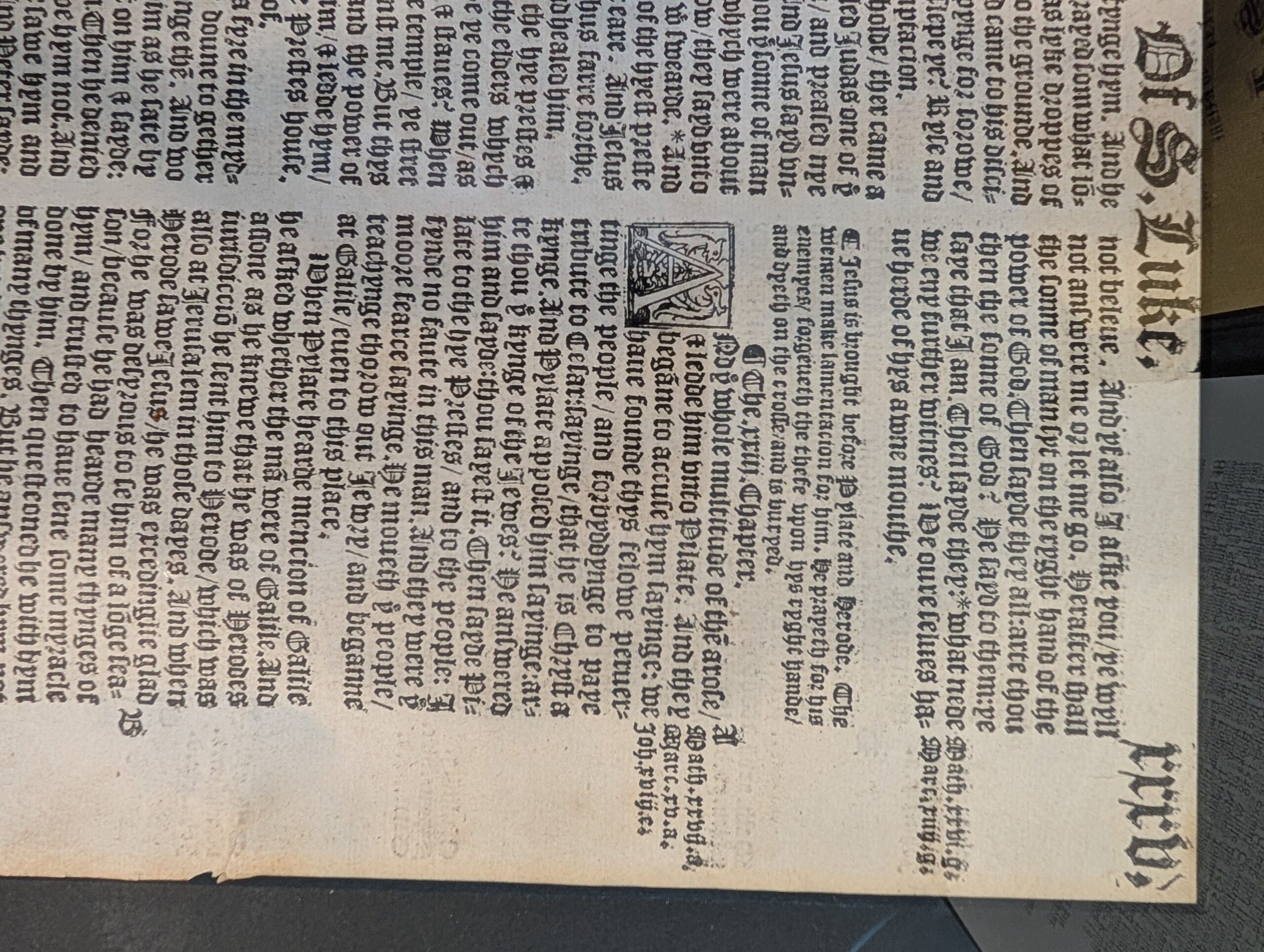 OF NOTE: Of the original est. 1500 copies of this Bible, only about 40 remain – some 15 complete and some 25 incomplete (compare to about 250 extant 1611 first issue “He” King James Bibles). But how many individual leaves are extant is unknown. Judge for yourself how rare this leaf is! Some history: William Tyndale’s New Testament, the first printed English NT, was published in 1525 (only 3 copies are extant) with several editions thereafter. Because Tyndale translated from the Greek using Erasmus’ Greek text, his English NT is widely considered “the real primary version of our English Bible” (Herbert), with his translations making up about 75% of all English Bibles today. Tyndale translated the entire NT and some parts the OT, completing only the first five Books of Moses, Jonah, and the non-canonical Prayer of Manasseh, prior to his execution on October 1536. While the 1535 Coverdale Bible was the first whole bible in English (only about 15 or so are extant), Coverdale based his 1535 translation on German and Latin sources rather than on the original Greek and Hebrew, so Tyndale’s work is not represented in the Coverdale Bible. In distinction from Coverdale, John Rogers a/k/a Thomas Matthews, in compiling “The Byble” of 1537, used Tyndale’s 1535 NT without adjustments or editing, the remainder of the OT being Coverdale’s own 1535 translations; see Herbert 15 and 34 for this scholarly consensus. Rogers’ only contribution was the marginal notes, chapter summaries, and prefaces. The Byble of 1537 a/k/a Mathews Bible was thus the first whole Bible to use Tyndale’s unedited translations from Greek and Hebrew sources — though the Coverdale Bible has the distinction of being the first whole English Bible but notably without Tyndale’s translations. Notwithstanding, only Tyndale’s translations have stood the test of time, forming the basis of the Great Byble of 1539-1541 in which, strangely, Coverdale revised Tyndale’s translations from Matthew’s 1537 “The Byble” rather than using his own, likely out of political expediency!! In sum: Tyndale’s translations, not Coverdale’s, proved superior and formed the basis of all major English translations in use today.